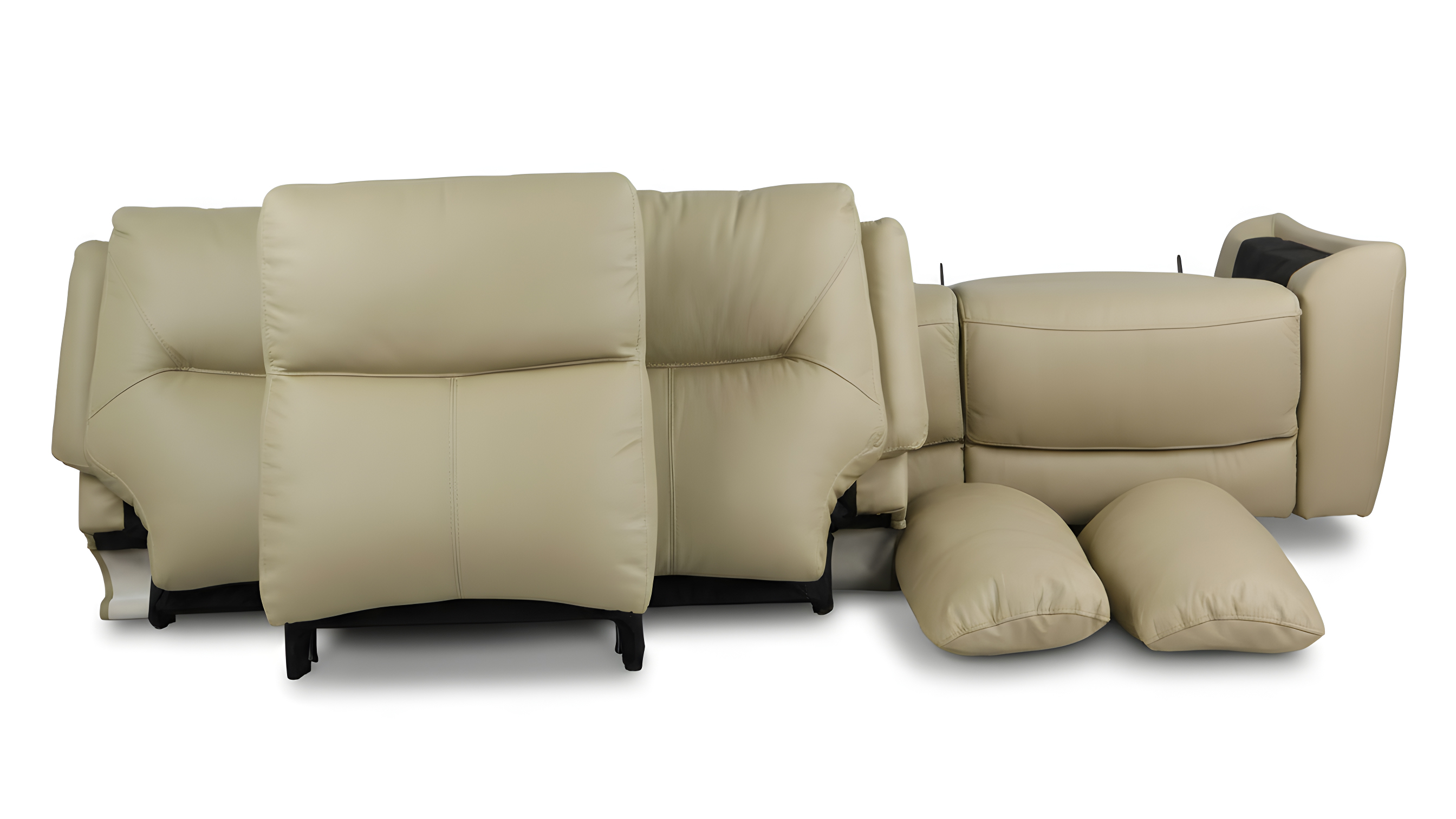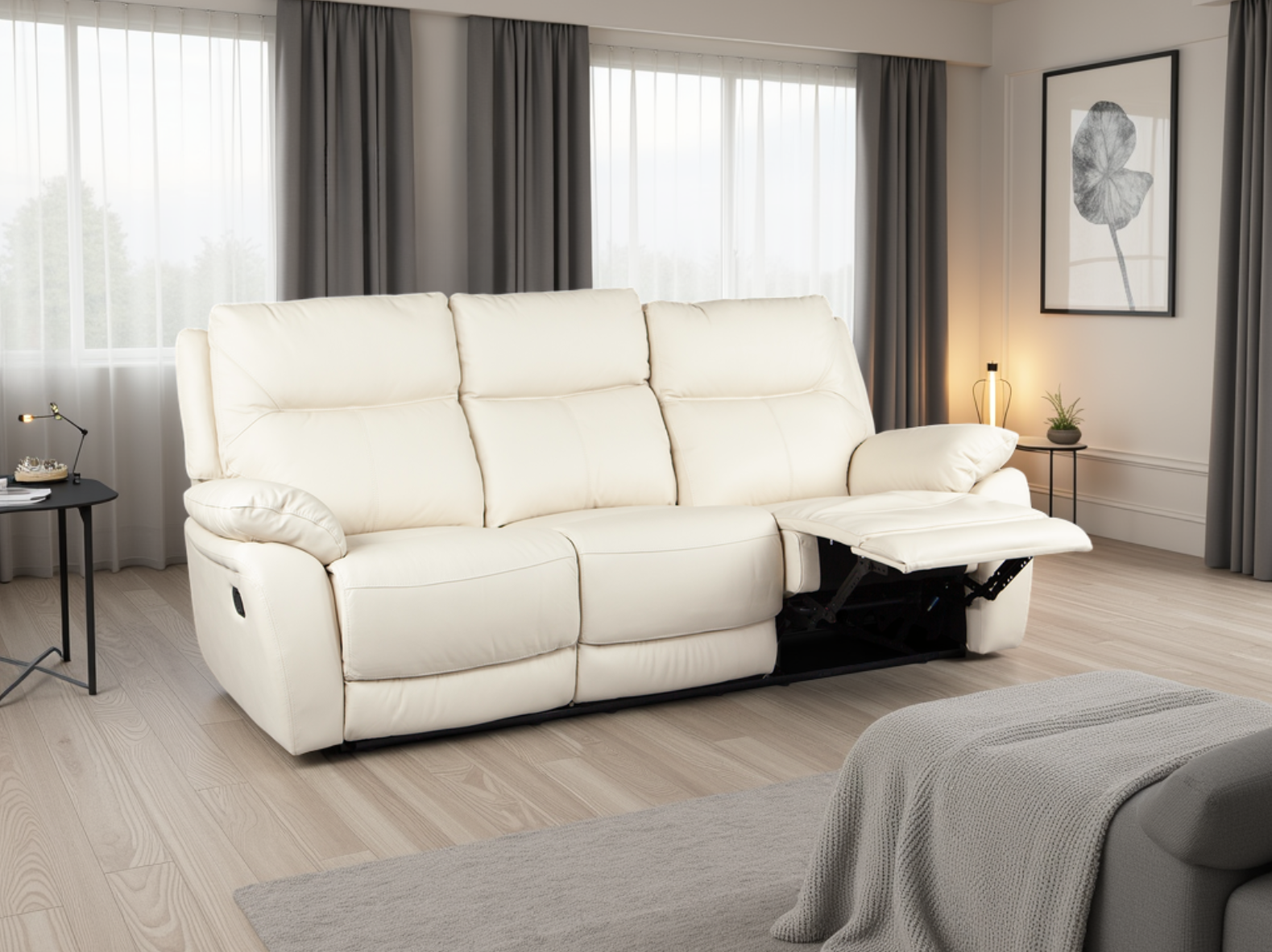 W obu wariantach mechanizm działa w bardzo podobny sposób – rozkładanie przebiega płynnie, a podnóżek oraz oparcie osiągają praktycznie taką samą pozycję wypoczynkową. Zarówno wersja manualna, jak i elektryczna pracują w systemie Zero-Wall, co pozwala ustawić sofę blisko ściany (około 10 cm).